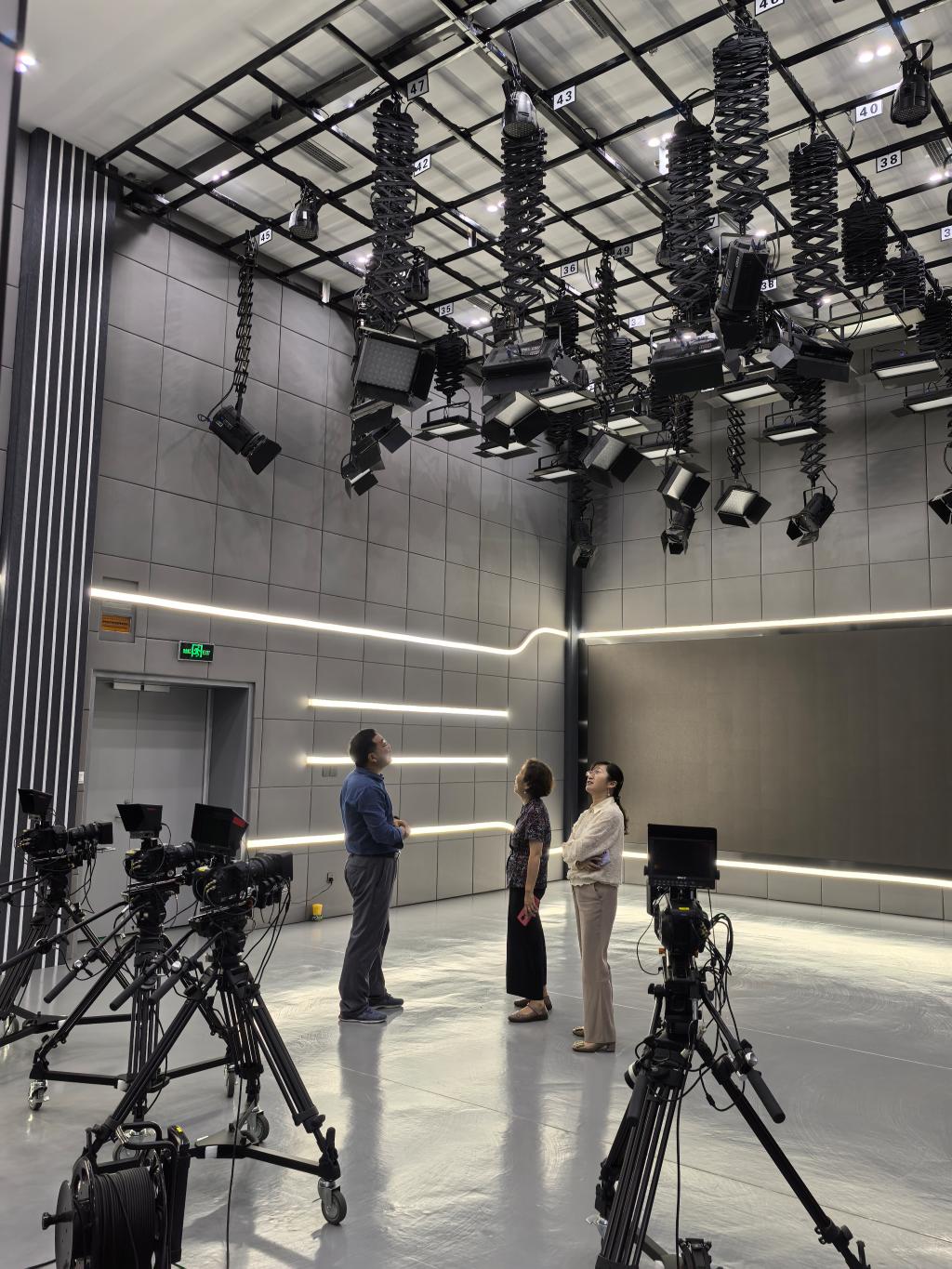 郑青华一行首先参观了南京大学新闻传播学院数字媒体实验室、演播实验室、摄影实验室、专业录音室。随后双方进行了座谈,实验室主任白净教授介绍了南京大学新闻传播学院整体情况和学院实验室重点工作,对媒体实验与实践教学中心的基本情况进行了说明。此外,座谈会还就学院本科、硕士的毕业设计进行了形式类别、规范要求、评价标准等方面的交流与探讨。