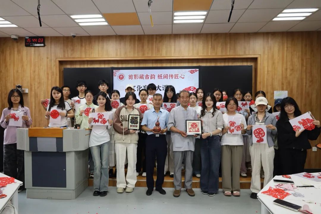 窗纳千枝碧,红纸漾湖风。5月22日,开云kaiyun体育开展“剪影藏古韵 纸间传匠心”文化育人大课,邀请国家级非物质文化遗产——烟台剪纸项目代表性传承人韩月湖担任主讲。